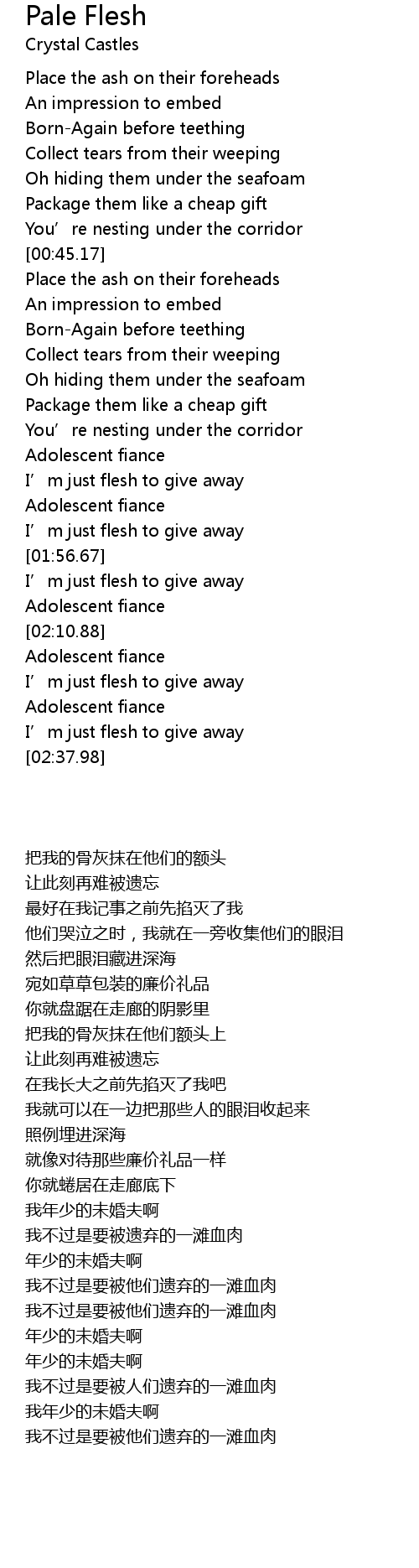 | [02:34.17] | I’m just flesh to give away |