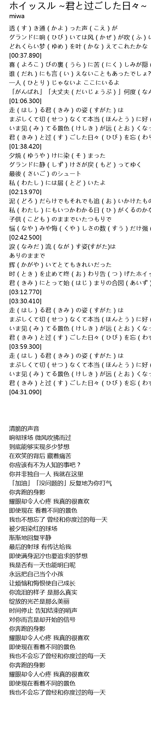 | [02:55.560] | 时(とき)を止めて终(お)わり告(つ)げたホイッスル |