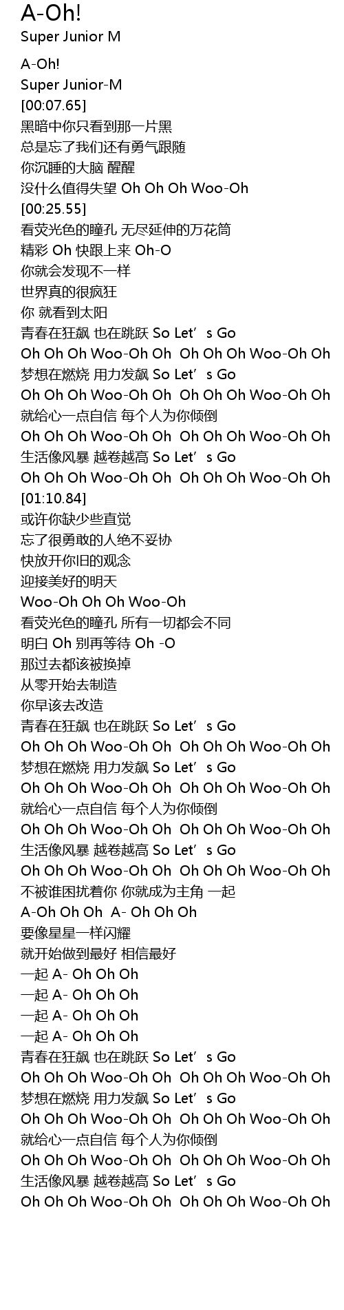 | [01:07.48] | Oh Oh Oh Woo-Oh Oh Oh Oh Oh Woo-Oh Oh |