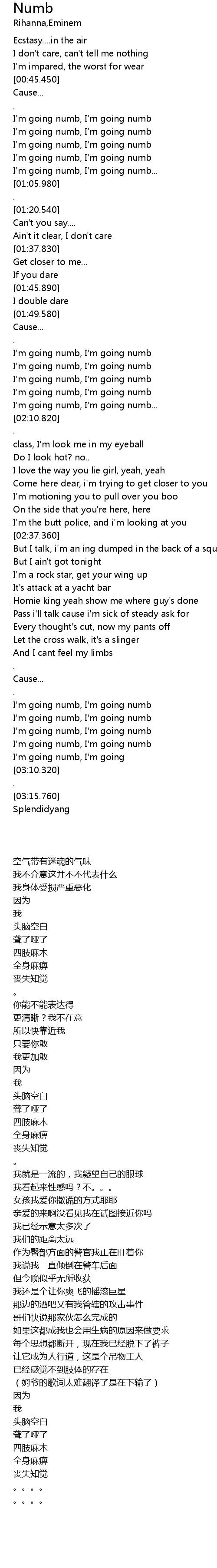 | [00:51.480] | I'm going numb, I'm going numb |