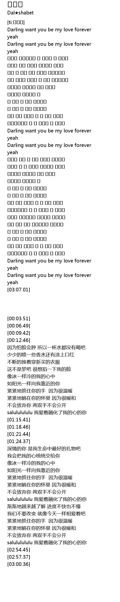 | [03:00.36] | Darling want you be my love forever |