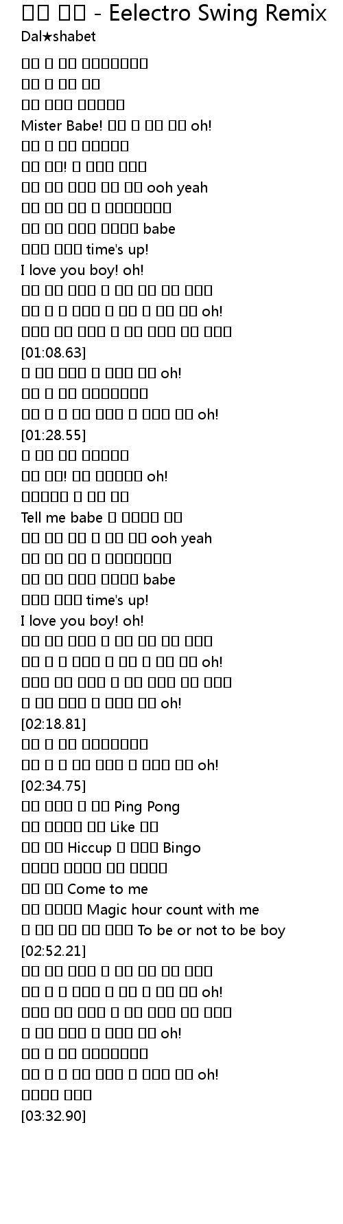 | [00:29.41] | Mister Babe! 눈에 확 띄는 건데 oh! |
