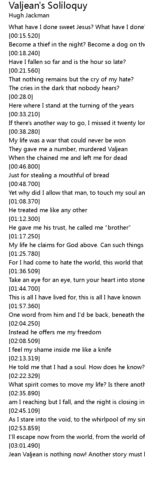 | Song | Valjean's Soliloquy |