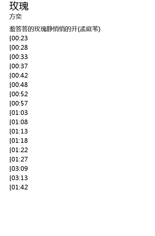 | [02:00][00:23] | 羞答答的玫瑰静悄悄的开 |