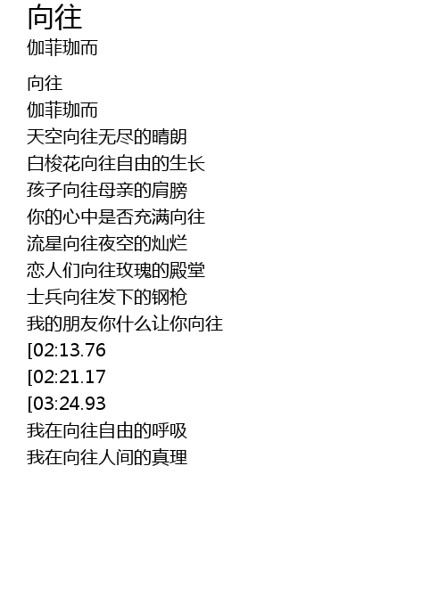 | [03:54.75][03:24.93][02:28.66] | 向往着 向往着 自由的歌唱 |