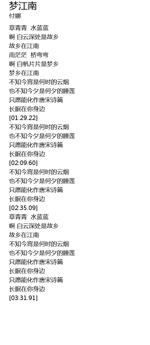 | [00:59.94] | mèng xiāng zài jiāng nán |