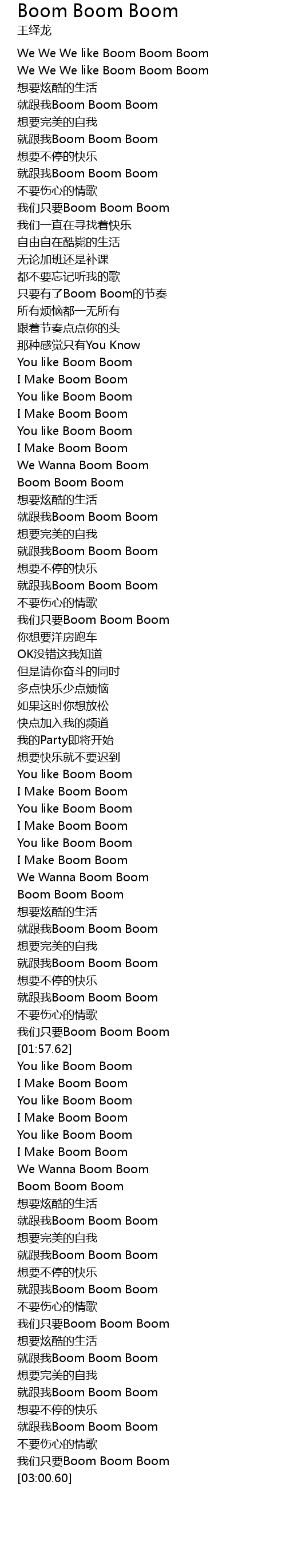 | [02:36.01] | jiù gēn wǒ Boom Boom Boom |