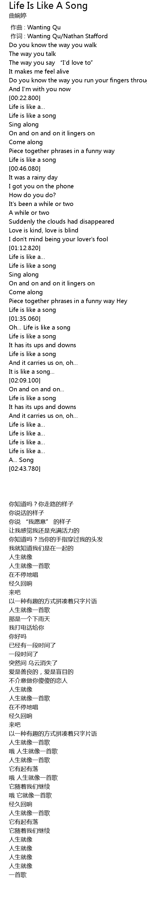 | [02:13.530] | Life is like a song |