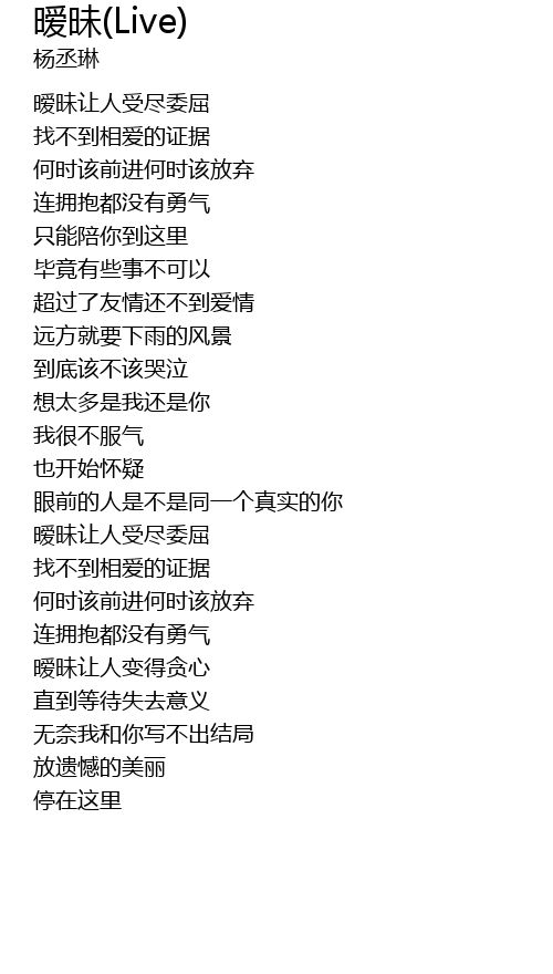 | Song | 暧昧(Live) |