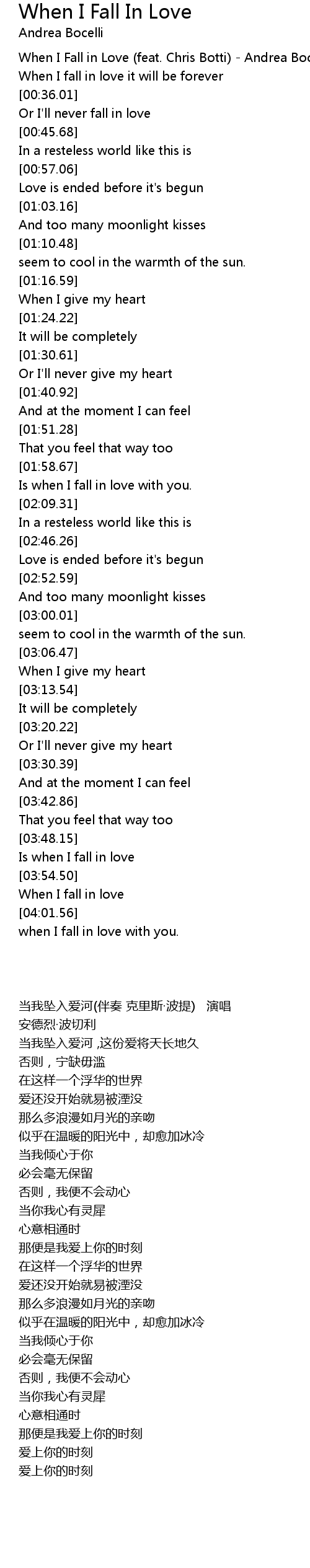 When I Fall in Love (feat. Chris Botti) - Andrea Bocelli |