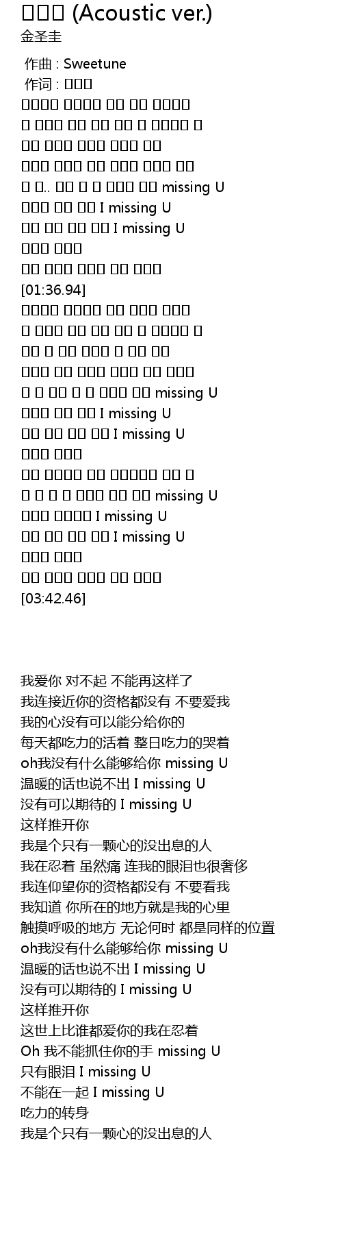 | [02:38.71] | 감히 바랄 수도 없어 I missing U |