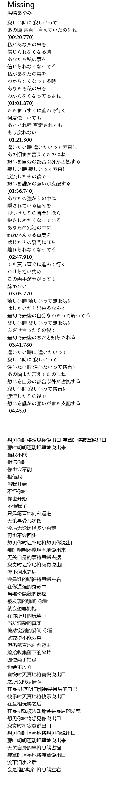 | [01:39.0] | 寂しい時 寂しいって素直に |