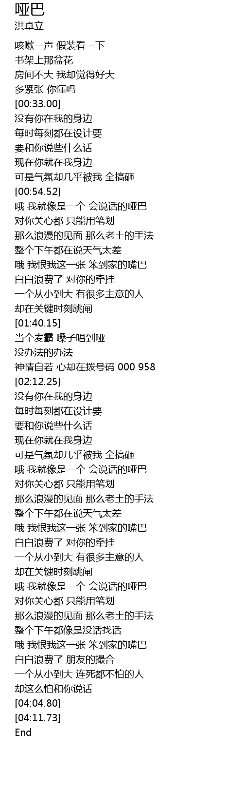 | [00:55.19] | 哦 我就像是一个 会说话的哑巴 |