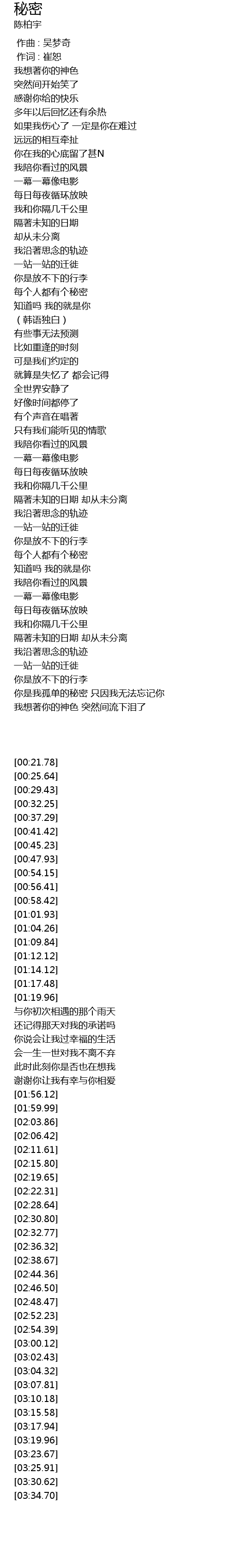 | [03:23.68] | 你是我孤单的秘密 只因我无法忘记你 |