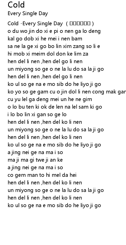 | [00:00.00] | Cold -Every Single Day (브리싱글데이) |
