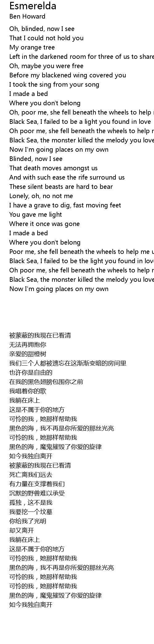 Poor me, she fell beneath the wheels to help me up |