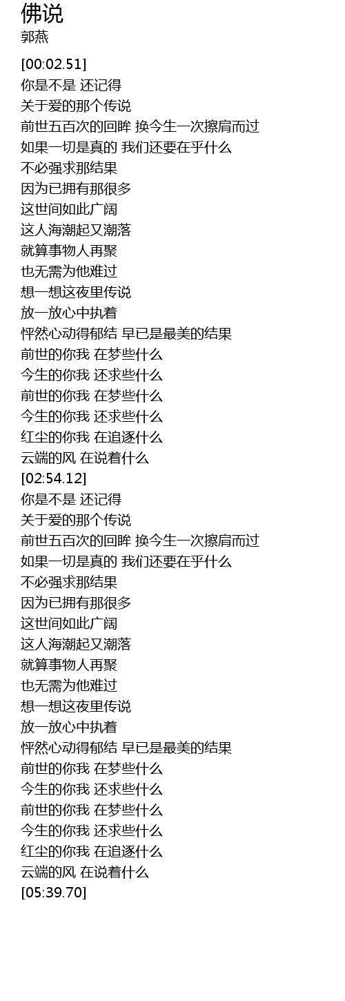 | [00:52.75] | 前世五百次的回眸 换今生一次擦肩而过 |