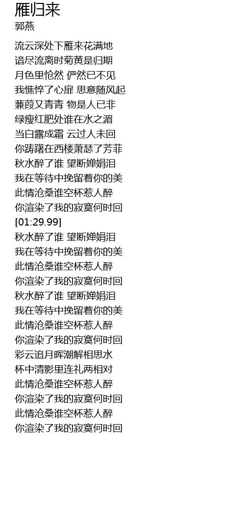 | [00:51.09] | 当白露成霜 云过人未回 |