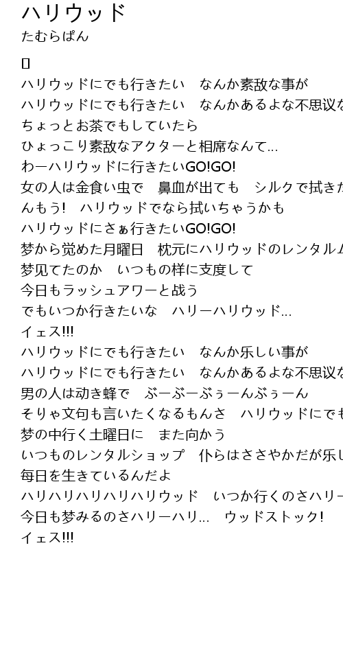 | ハリハリハリハリハリウッド いつか行くのさハリーハリウッド | |