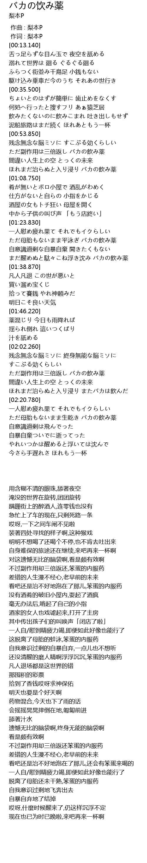 | [02:23.980] | ただ母胎もないまま生乾き バカの飲み薬 |
