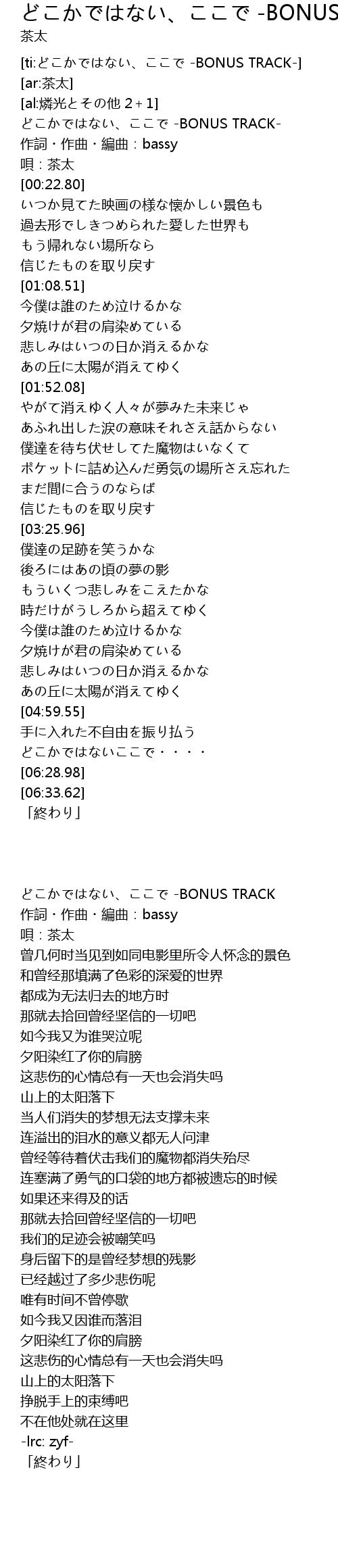 | [00:02.00] | どこかではない、ここで -BONUS TRACK- |