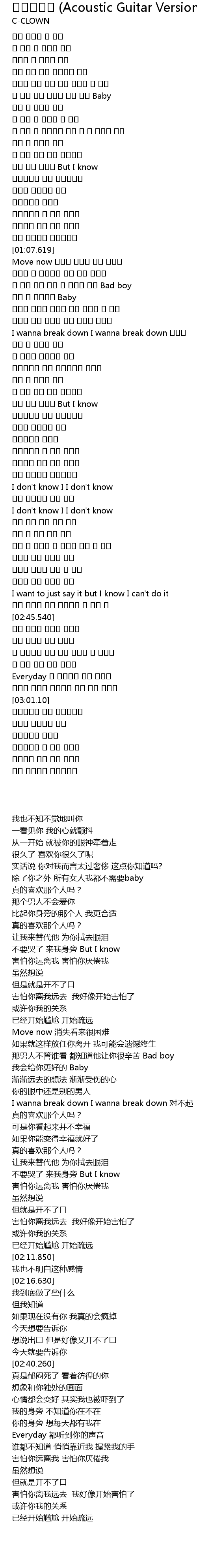 | [01:24.889] | I wanna break down I wanna break down 미안해 |