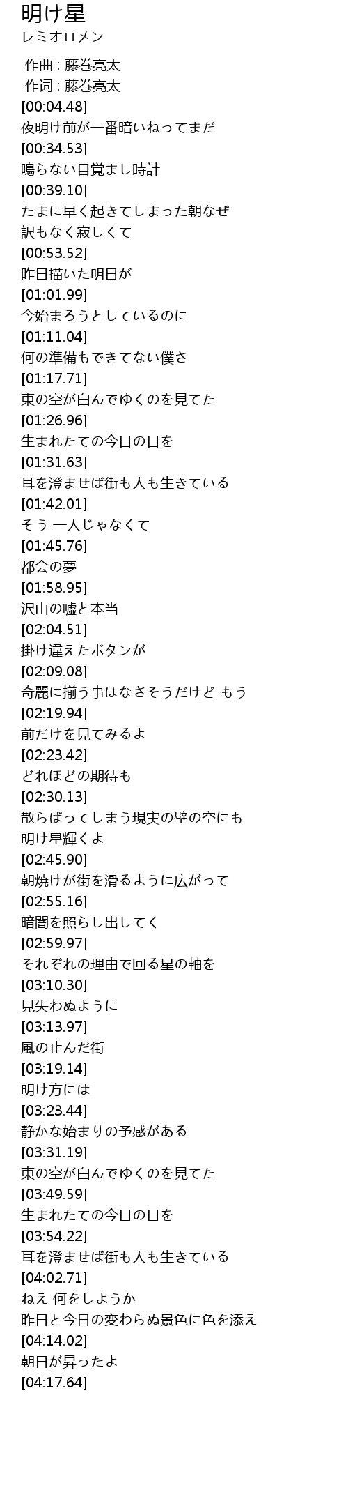 | [02:41.72] | 明け星輝くよ |