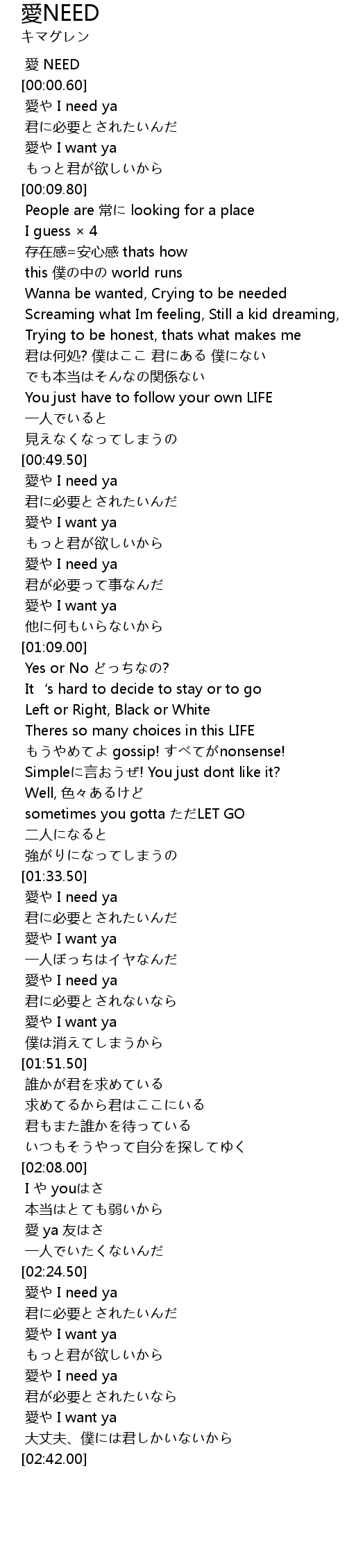 | [01:43.50] | 愛や I need ya |
