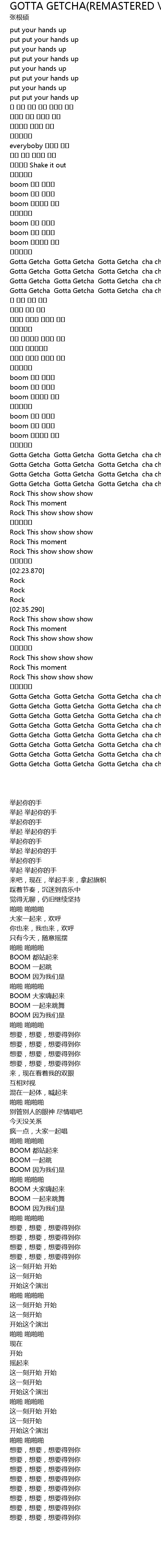 | [02:00.630] | Gotta Getcha Gotta Getcha Gotta Getcha cha cha |