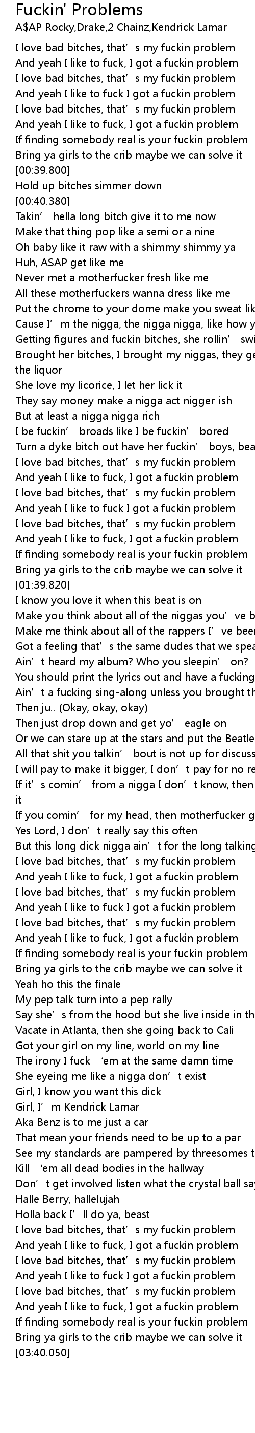 | [00:19.960] | I love bad bitches, that' s my fuckin problem |
