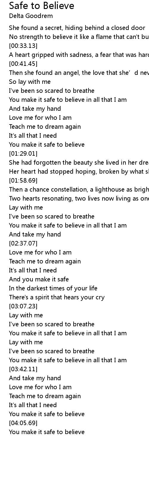 | [00:59.39] | You make it safe to believe in all that I am |