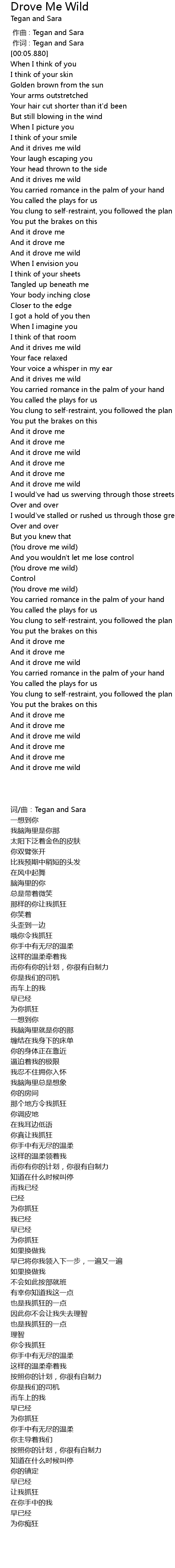 | [00:00.00] | 作曲 : Tegan and Sara |