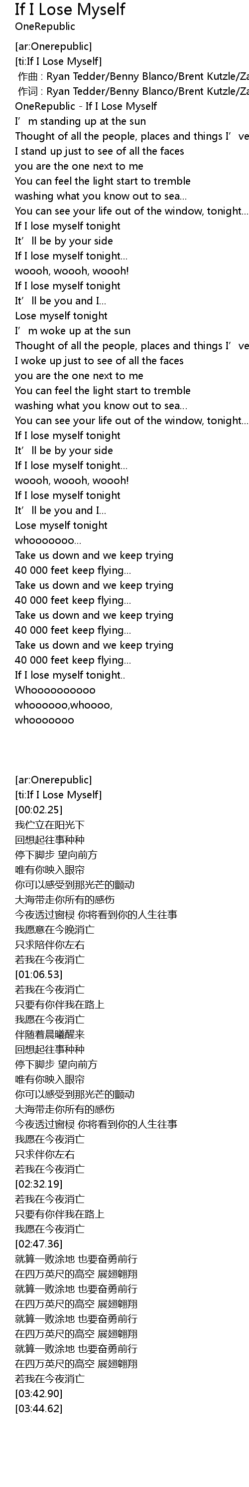 | [00:02.25] | OneRepublic - If I Lose Myself |