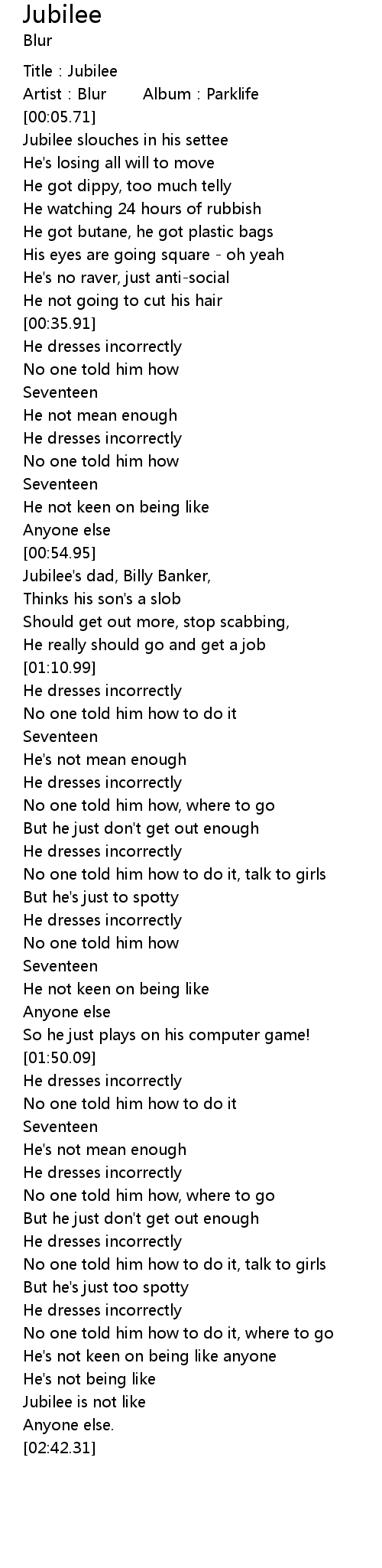 | [00:03.89] | Artist: Blur Album: Parklife |