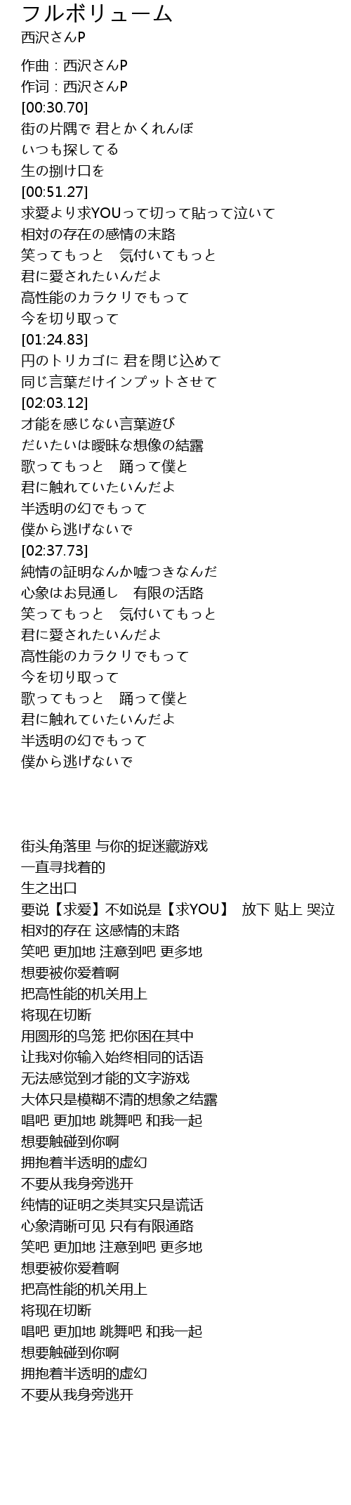 | [00:54.27] | 求愛より求YOUって切って貼って泣いて |