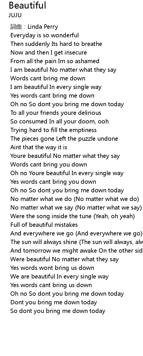 | [00:59.74] | I am beautiful No matter what they say |
