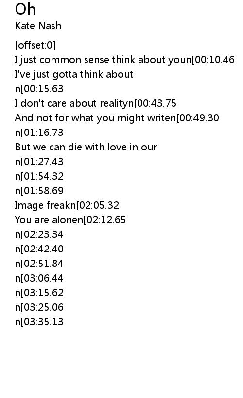 | [00:08.28]I just common sense think about youn[00:10.46]I really really I can't think about youn[00:12.79]I've just gotta think about youn[00:15.10]n[00:15.63]you don't know I want ton[00:17.72]n[00:39.06]Don't tell me who to ben[00:41.81]I don't care about realityn[00:43.75]I'm livin', yeah, just for men[00:45.97]And not for what you might writen[00:49.30]About my head and bodyn[00:54.19]n[01:16.73]To leave behind is not to dien[01:19.18]But we're all dying on our ownn[01:21.68]But we can die with love in our heartsn[01:25.93]n[01:27.43]And theirsn[01:28.49]n[01:49.40]I am angry, confused, frustratedn[01:53.71]n[01:54.32]Tired, I am alonen[01:58.13]n[01:58.69]On this onen[01:59.81]n[02:01.19]Image conciousn[02:03.25]Image freakn[02:05.32]The mirror lies to you and men[02:09.96]You are alonen[02:12.65]On this onen[02:13.94]n[02:19.58]I don't gon[02:21.33]n[02:23.34]I don't known[02:26.35]n[02:37.61]I've changed my mindn[02:40.48]n[02:42.40]I've changed my facen[02:45.47]n[02:46.97]Yeah, I change all the timen[02:51.10]n[02:51.84]So give me spacen[02:55.00]n[03:06.44]Where'd they go?n[03:09.88]n[03:11.41]I don't known[03:13.80]n[03:15.62]Where'd they gon[03:18.43]n[03:20.43]I don't known[03:23.19]n[03:25.06]Well, I don't known[03:27.94]n[03:30.13]Where'd they go?n[03:32.88]n[03:35.13]I don't known[03:37.50]n[03:39.69] |