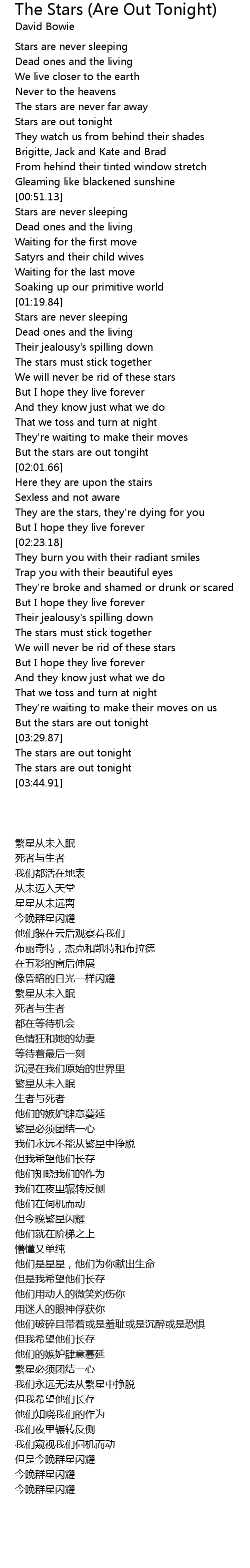 But the stars are out tonight |