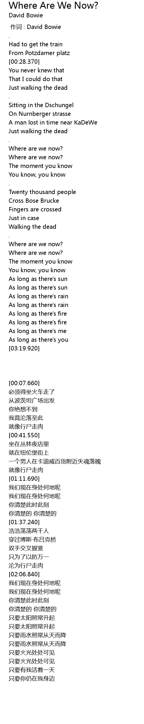 | [00:00.00] | 作词 : David Bowie |