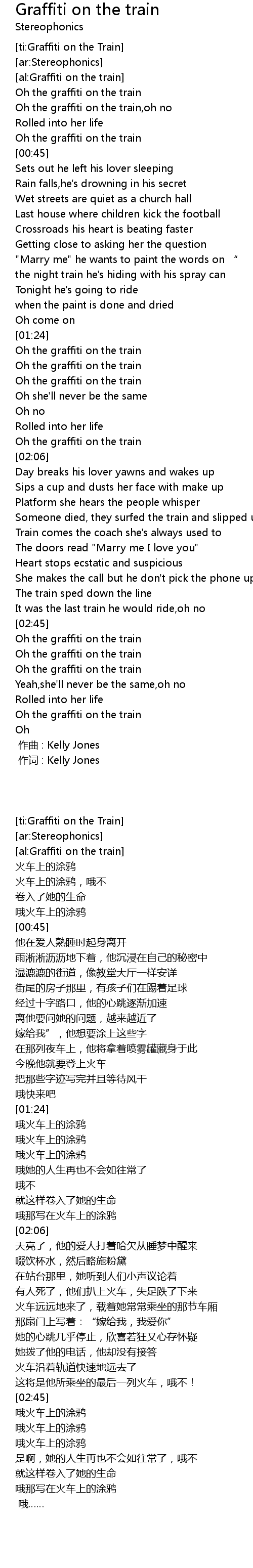 | [00:00.00] | zuò cí : Kelly Jones |