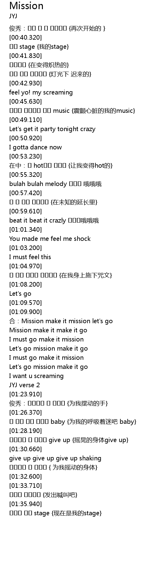 | [01:34.390] | 함성이 들려온다 {发出喊叫吧} |
