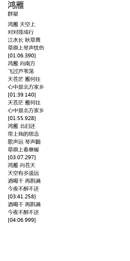 | [03:08.999] | hóng yàn xiàng cāng tiān |