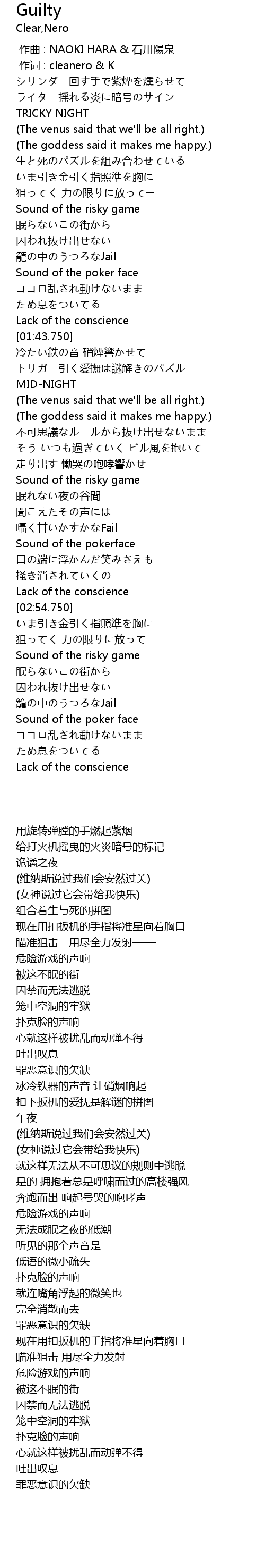 | [01:58.620] | トリガー引く愛撫は謎解きのパズル |
