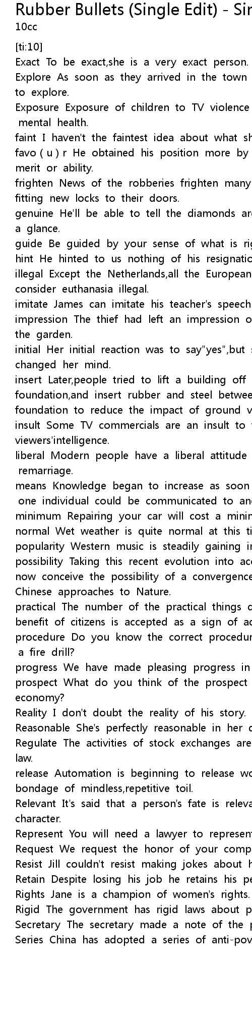 | [00:08.494] | Exact To be exact,she is a very exact person. |