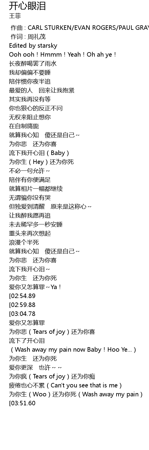 | [03:15.51] | wei ni bei Tears of joy hai wei ni xi |