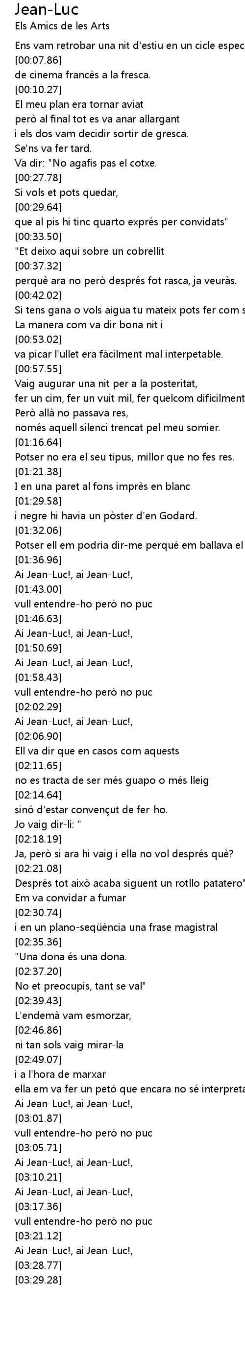 | [01:29.73] | i negre hi havia un pò ster d' en Godard. |