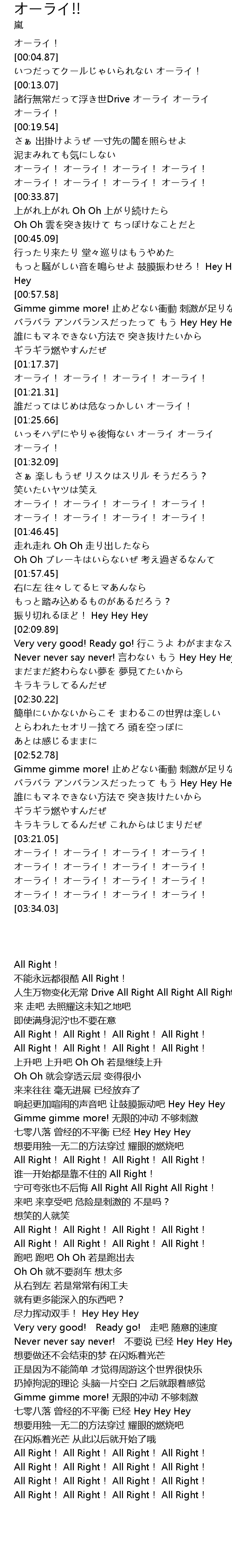 | [03:22.77] | オーライ! オーライ! オーライ! オーライ! |