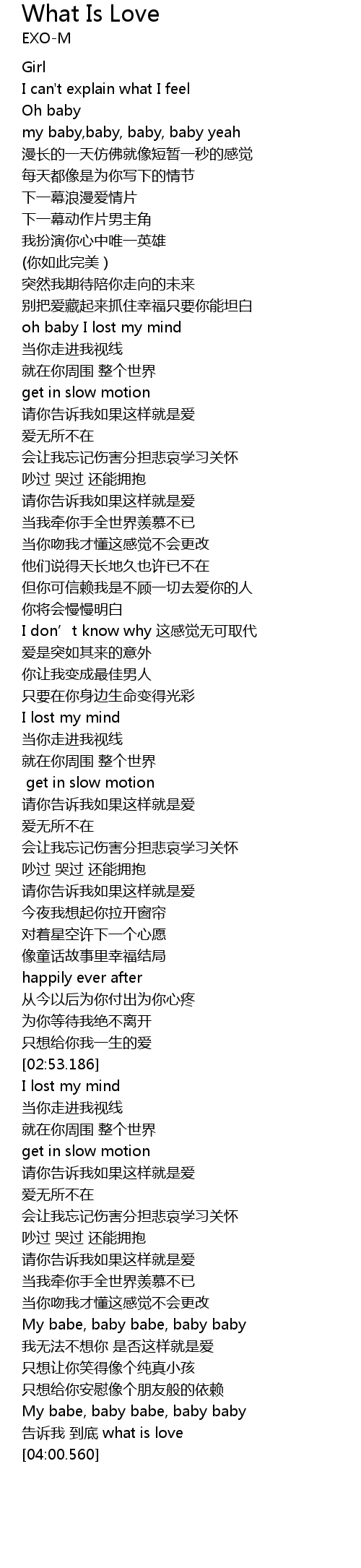 | [03:56.870] | 告诉我 到底 what is love |