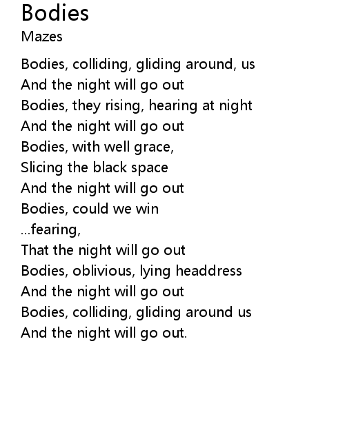 Bodies, colliding, gliding around, us |