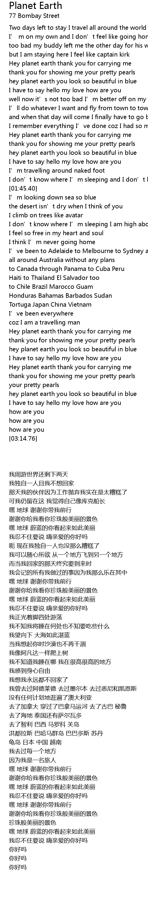 | [00:30.14] | Hey planet earth thank you for carrying me |